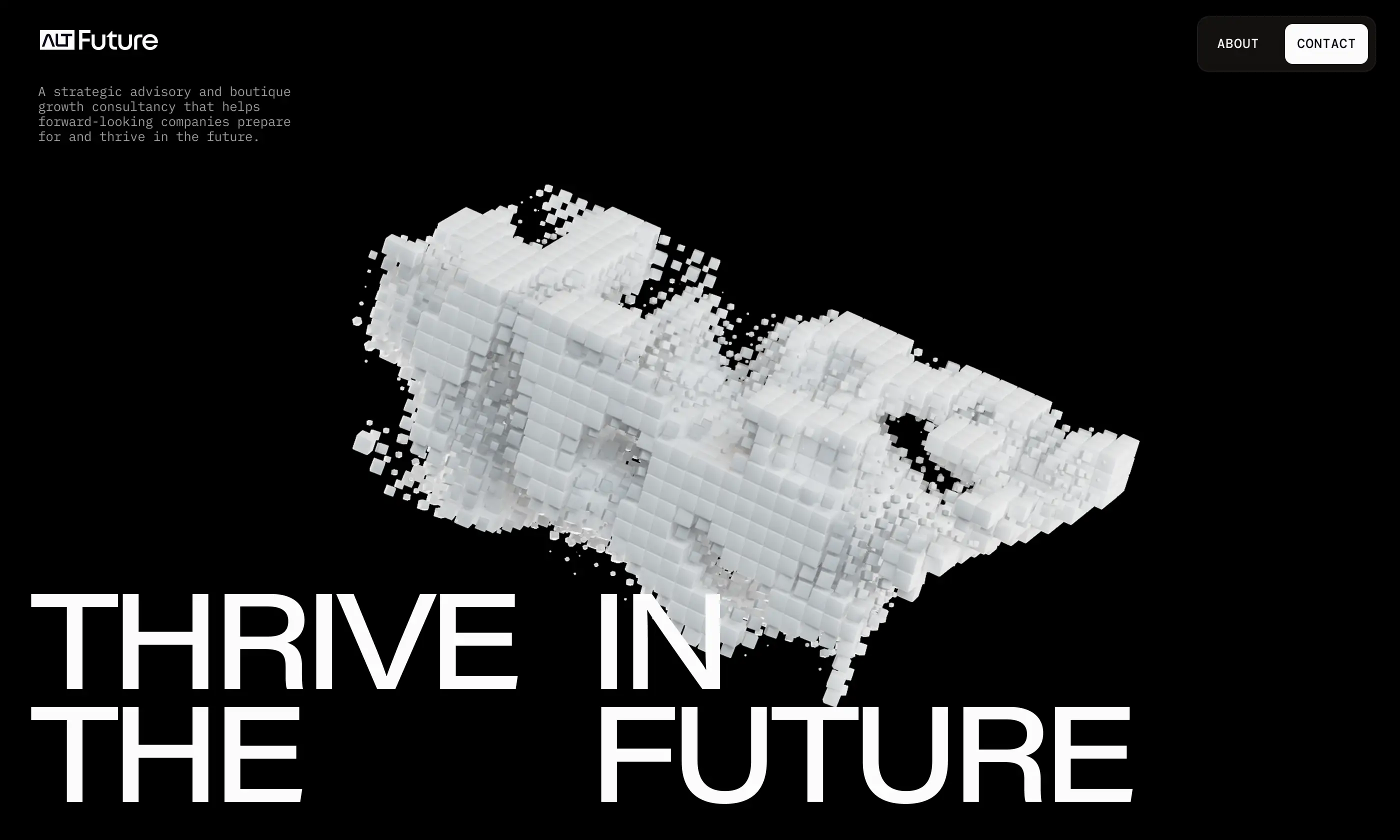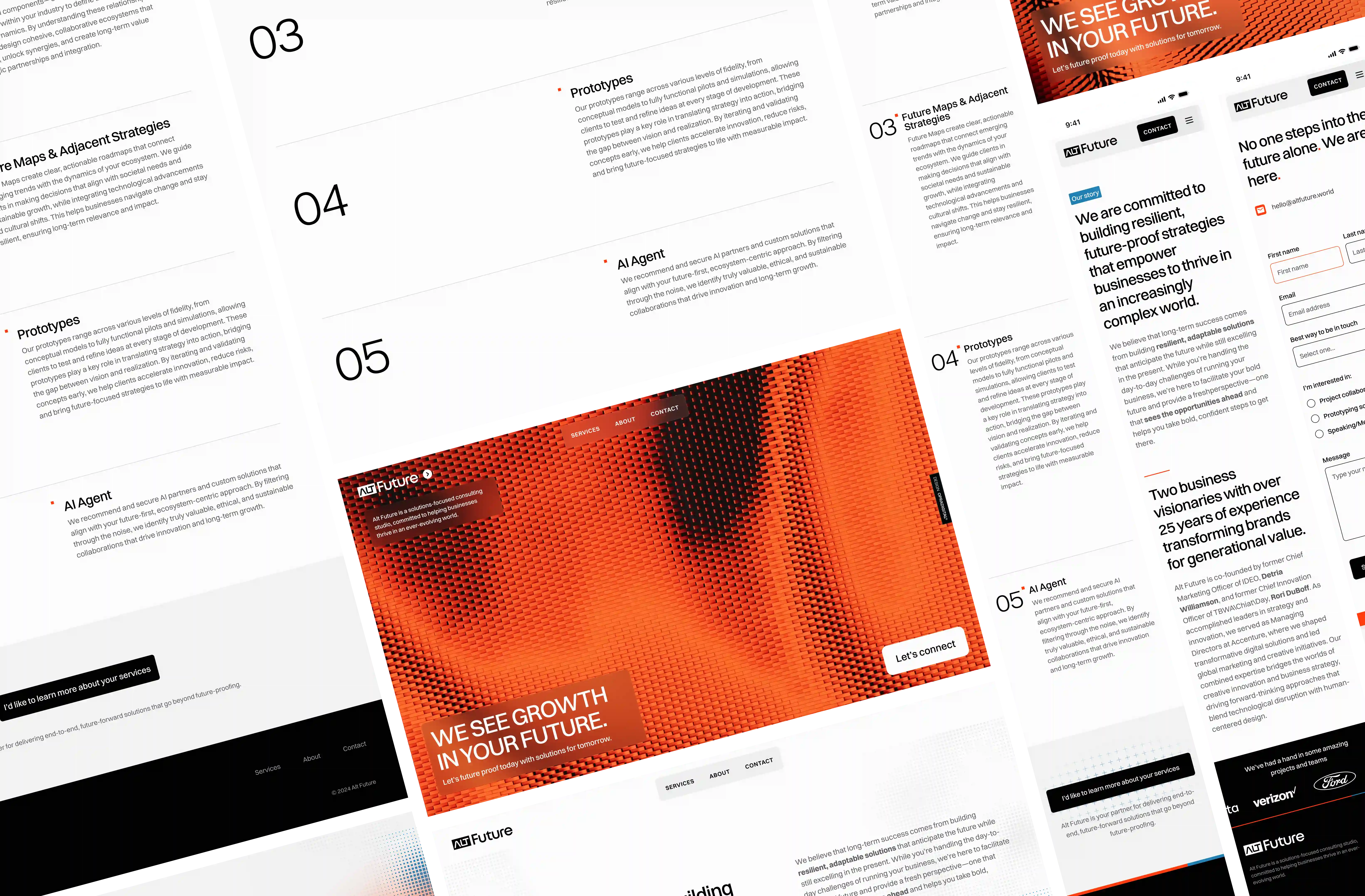 Alt Future is a solutions-oriented studio helping brands navigate rapidly shifting technological landscapes. They partnered with us to define their brand identity and digital presence. Through a high-velocity conceptual phase, we explored edgy, forward-thinking aesthetics—resulting in a range of bold directions that each captured the studio's visionary spirit.