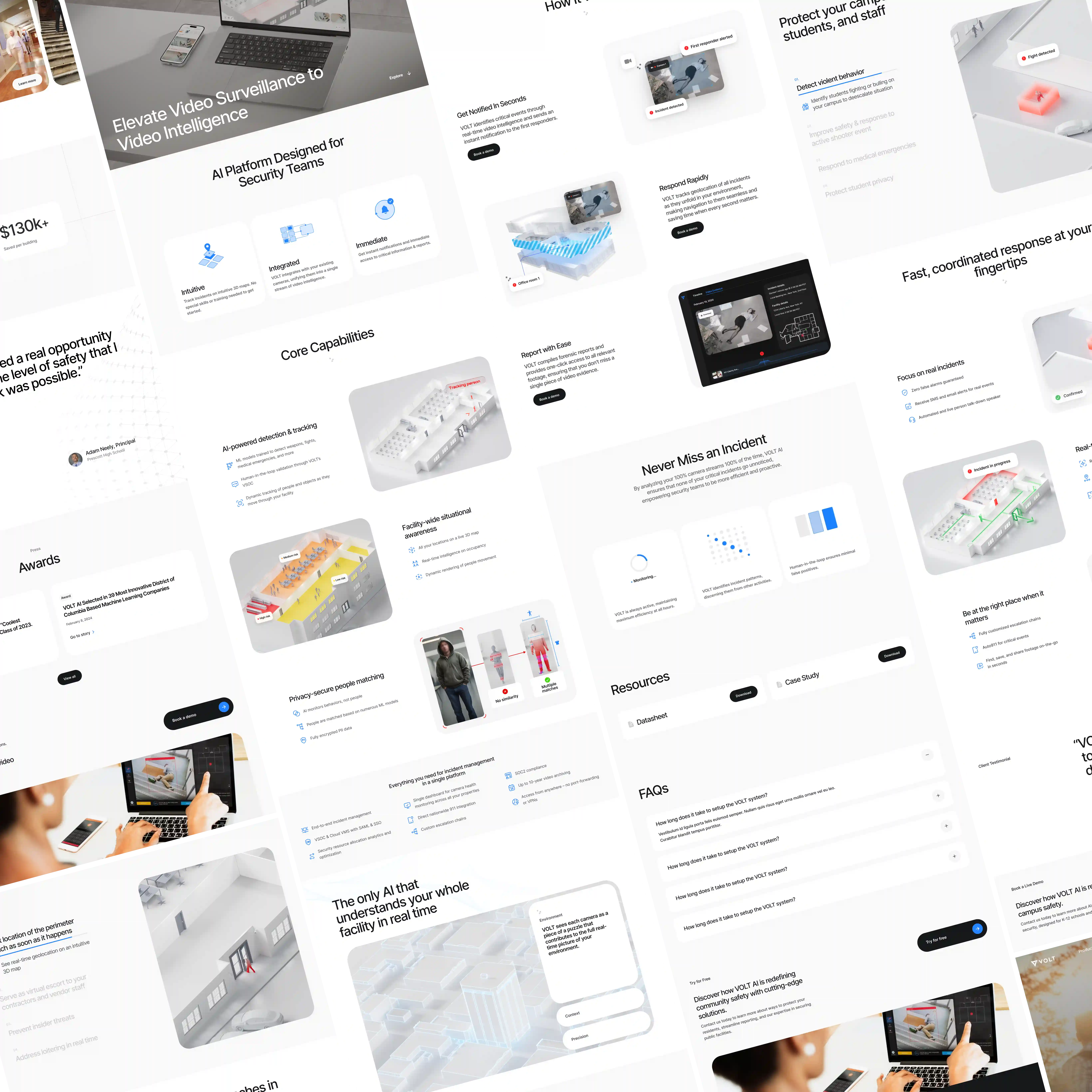 Volt AI was starting to establish their core technology and needed a professional website and product design that would position them as a premiere solution for intelligent security operations. Volt works by attaching an AI layer on top of existing security infrastructure which then creates a digital twin and monitors events automatically. The scope of this work involved a range of art direction, brand and concept ideation, product UX auditing and MVP designs.